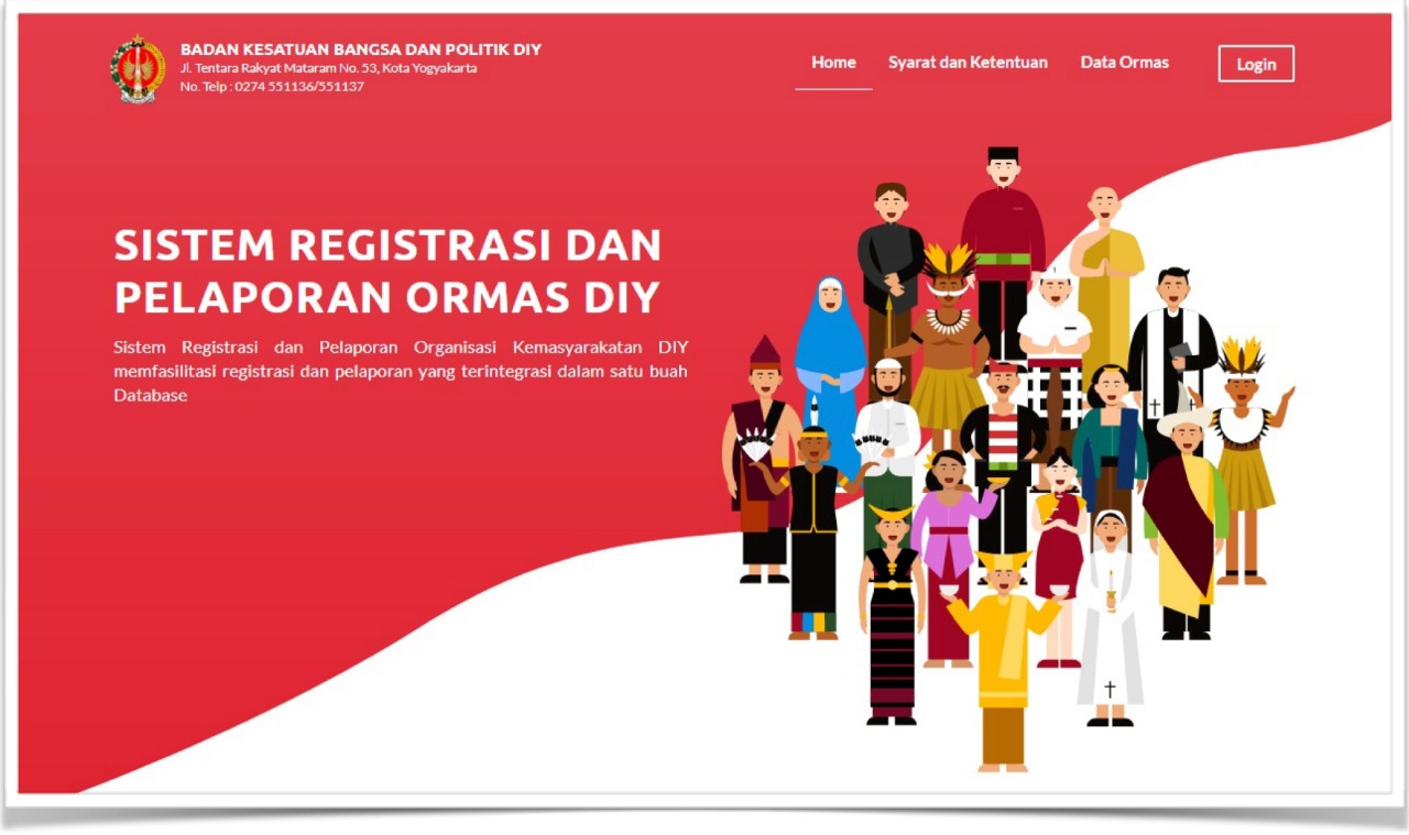 Read MoreSistem Registrasi dan Pelaporan Ormas DIY – merupakan salah satu inovasi yang dilakukan oleh Badan Kesatuan Bangsa dan Politik Daerah Istimewa Yogyaka